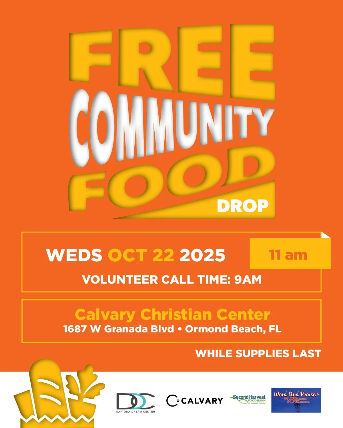 We’re excited for our next Food Drop on Wednesday, October 22nd at 11 AM at our Ormond Campus (while supplies last).